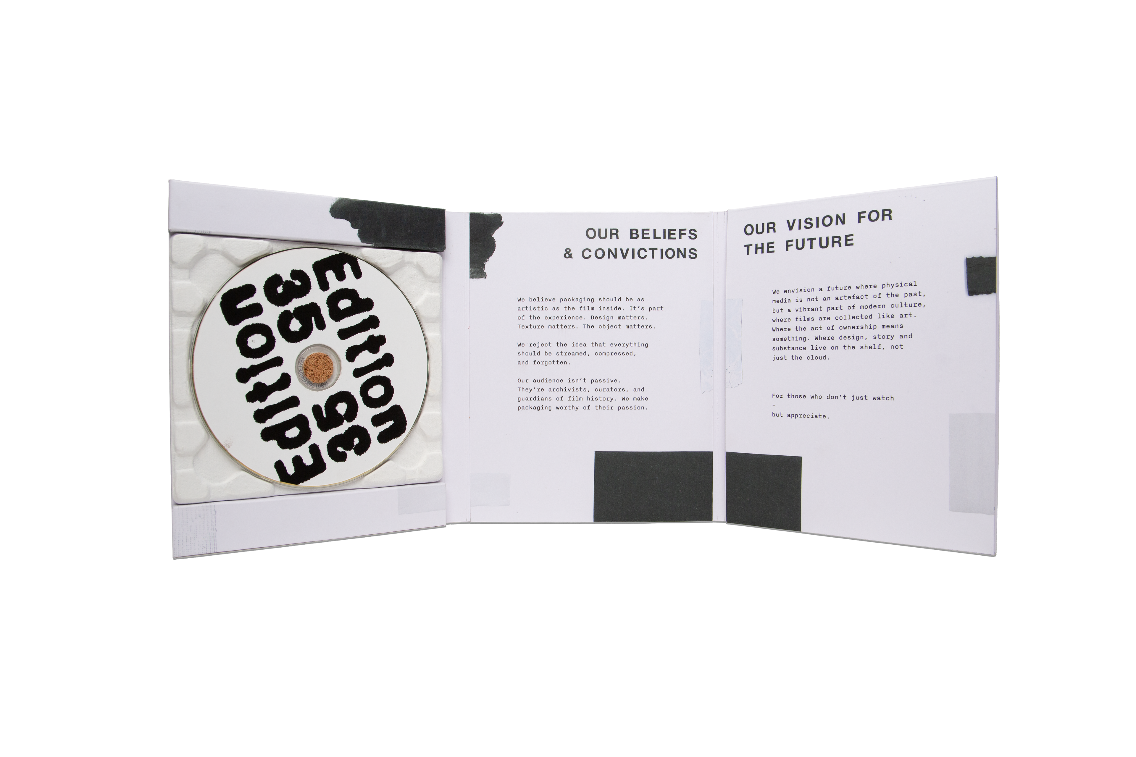 A brand identity, manifesto, and three products for 'Edition 35'. A company that aims to reinvigorate physical media with unique and tactile packaging.