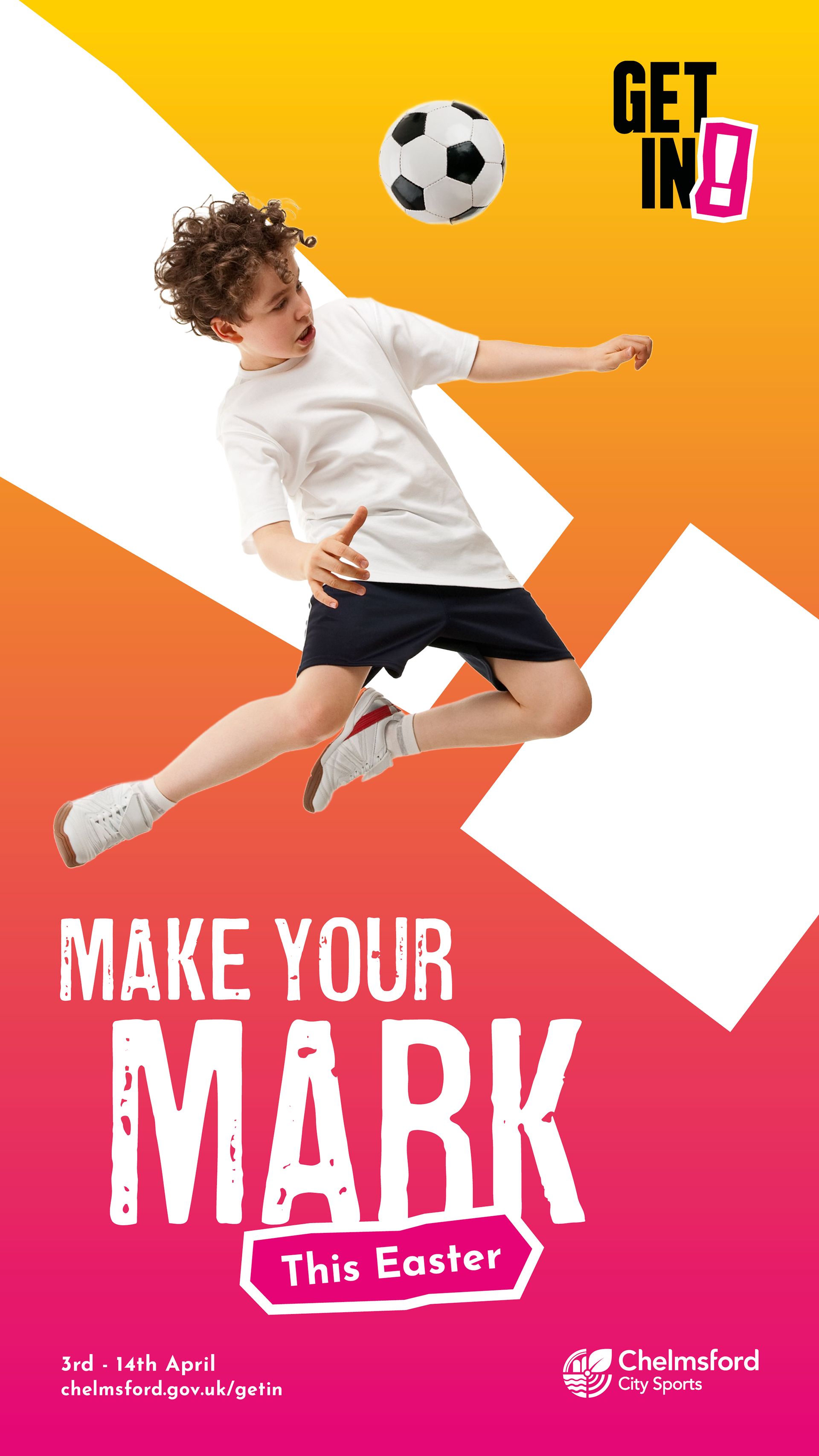 A brand identity for 'Get In!', a subsidiary of Chemlsford City Sports. Produced as a mock project whilst completing a work placement at This is Fever.